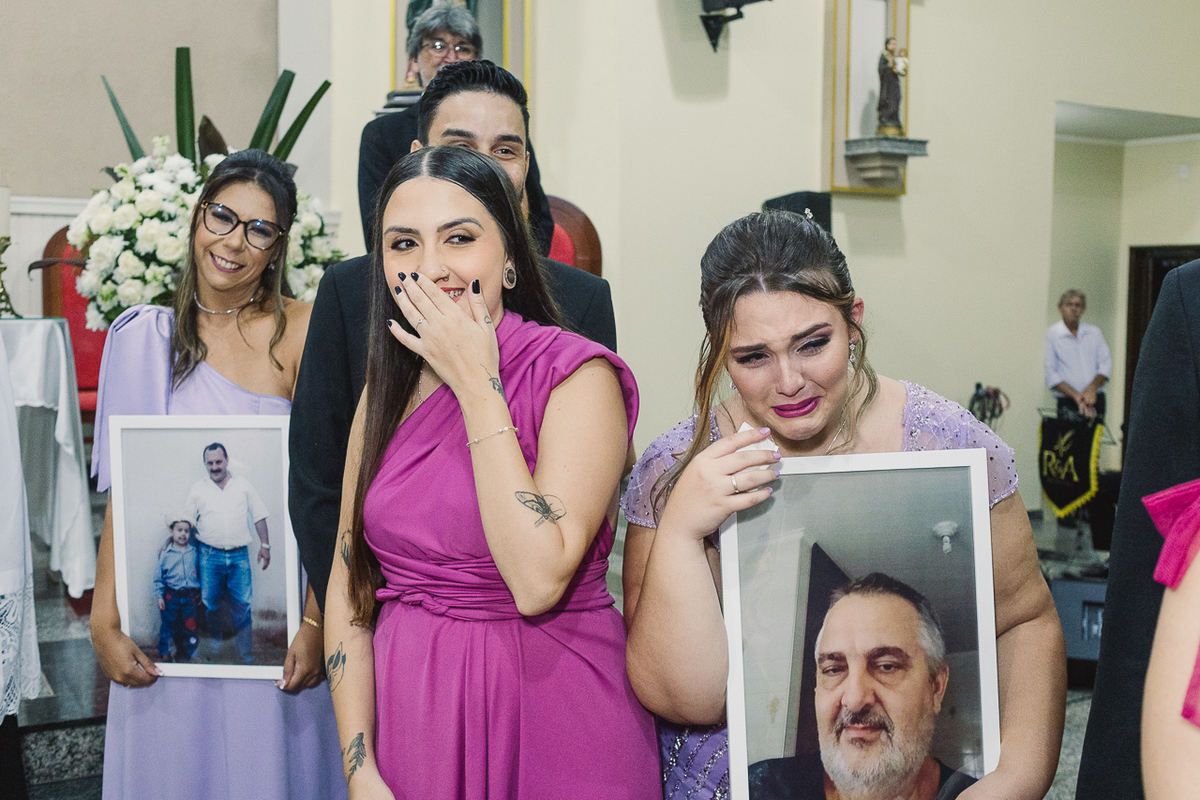 A entrada com os quadros dos pais deles, que já se foram, deixou todo mundo com o coração apertado, mas foi lindo demais!